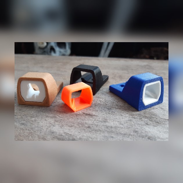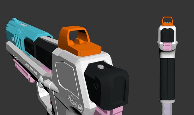 The fake red dot sight was designed by Ehdrien and therefore matches the Gecko perfectly. It is available as a standalone part or and upgrade to a complete Gecko blaster order.